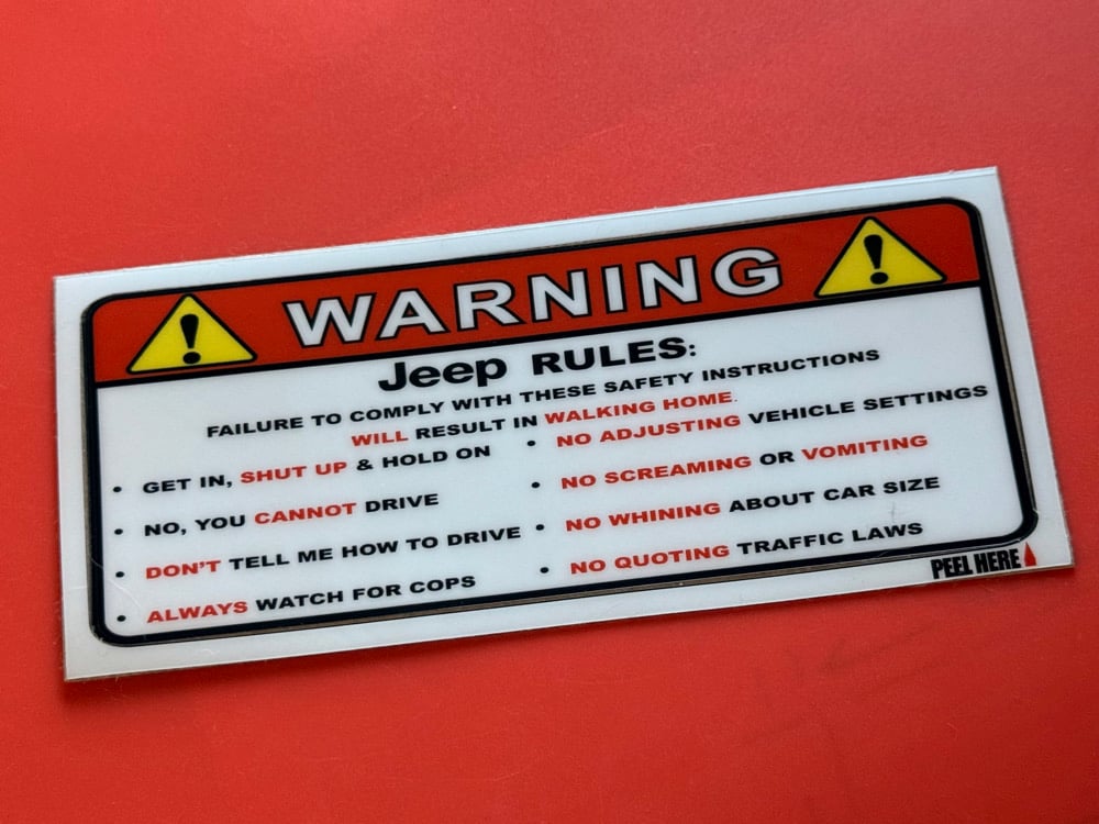 Grab your Jeep Rules Now and replace the old visor decal with this new one. High quality vinyl made to last.