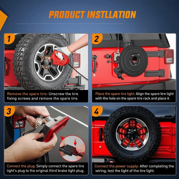 ******This product features a plug-and-play connector, eliminating the need for any drilling or cutting. To install, simply take off the spare tire, position the light on the studs, and connect it to the vehicle's existing light connector for a straightforward and fast setup. It is designed to fit Jeep Wrangler models from 2007 to 2017, specifically for spare tires that are 14 inches in diameter*******