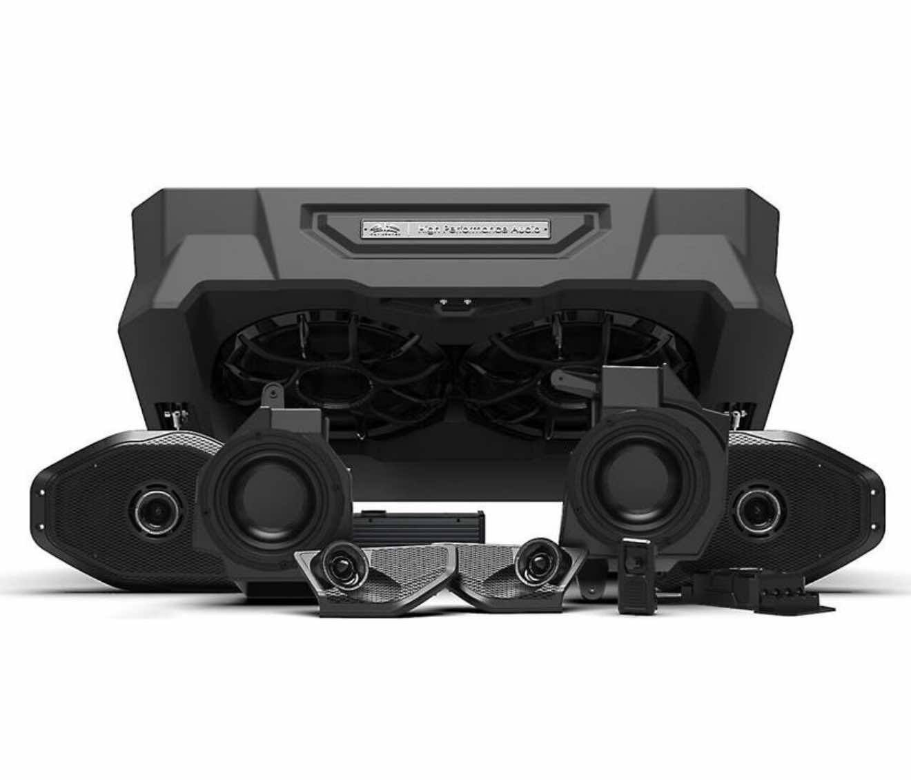 System includes 6 speakers, 2 subwoofers, amplifier, wiring, level control, and enclosures